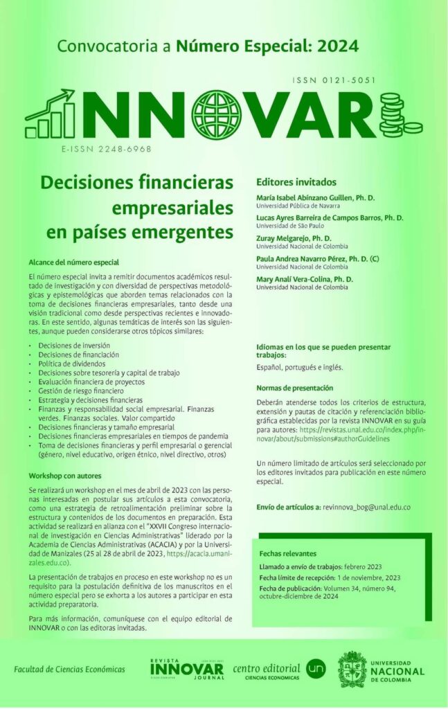 ACACIA AC hace la atenta invitación a participar en la convocatoria del número especial de la Revista INNOVAR Journal, que se publicará en el próximo año 2024.